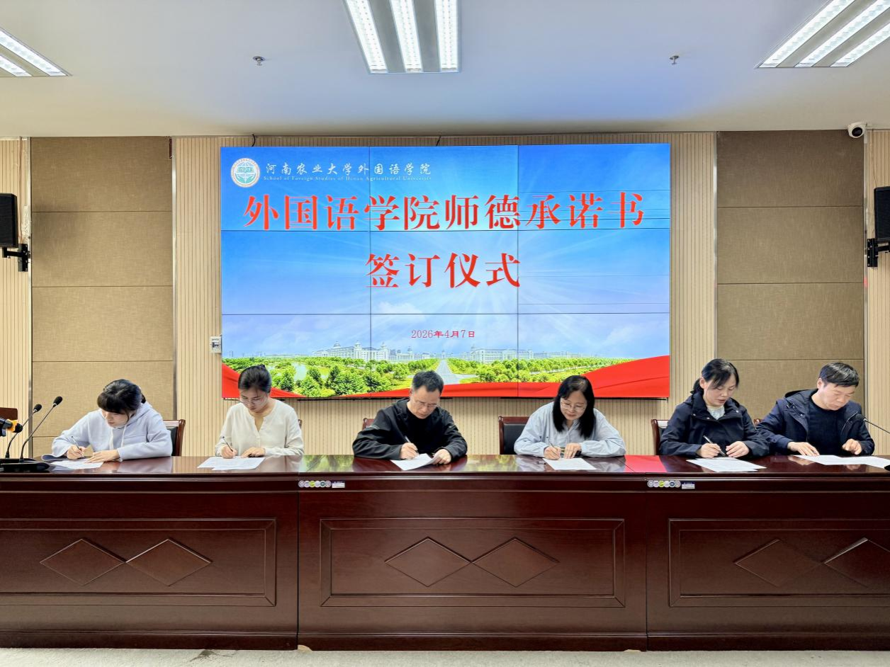 宣誓结束后,举行了师德承诺书签订仪式。全体教职工依次上台,郑重签署《河南农业大学教师师德承诺书》。承诺书从坚定政治方向、自觉爱国守法、传播优秀文化、潜心教书育人、关心爱护学生、坚持言行雅正、遵守学术规范、秉持公平诚信、坚守廉洁自律、积极奉献社会、文明使用网络等方面,明确了教师应履行的职责和应遵守的行为准则。
