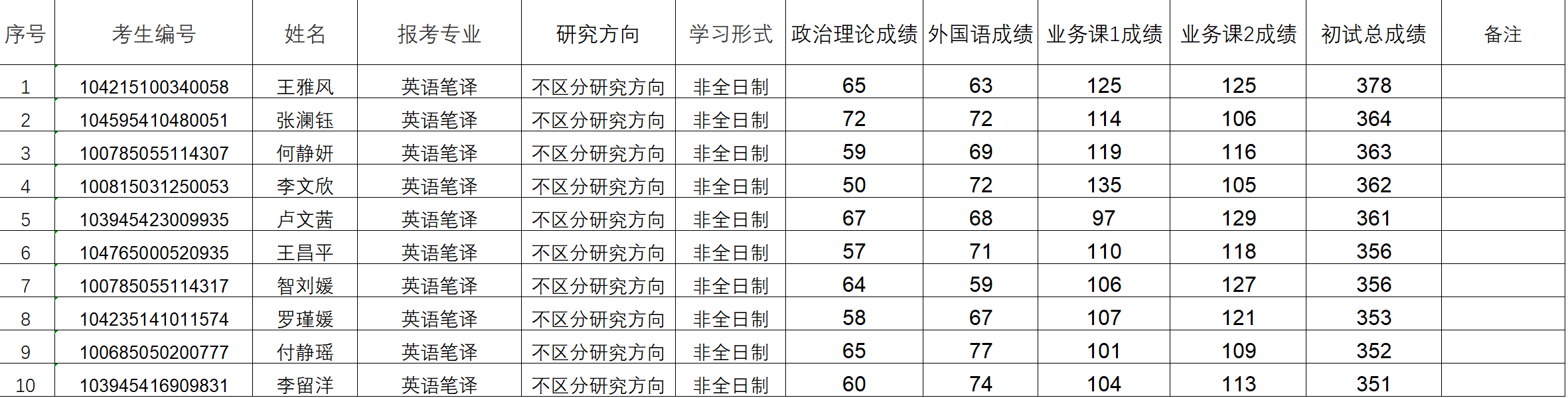 Bet365网址 英语笔译专业2025年硕士研究生复试名单公示(调剂)