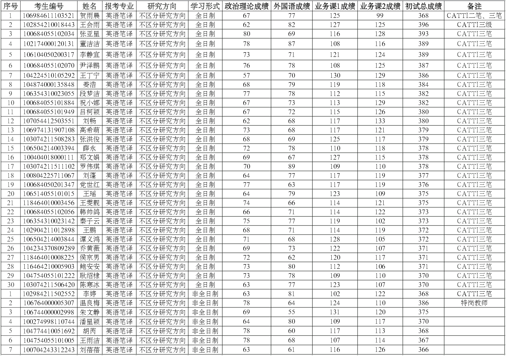 Bet365网址 英语笔译专业2024年硕士研究生复试名单(调剂)