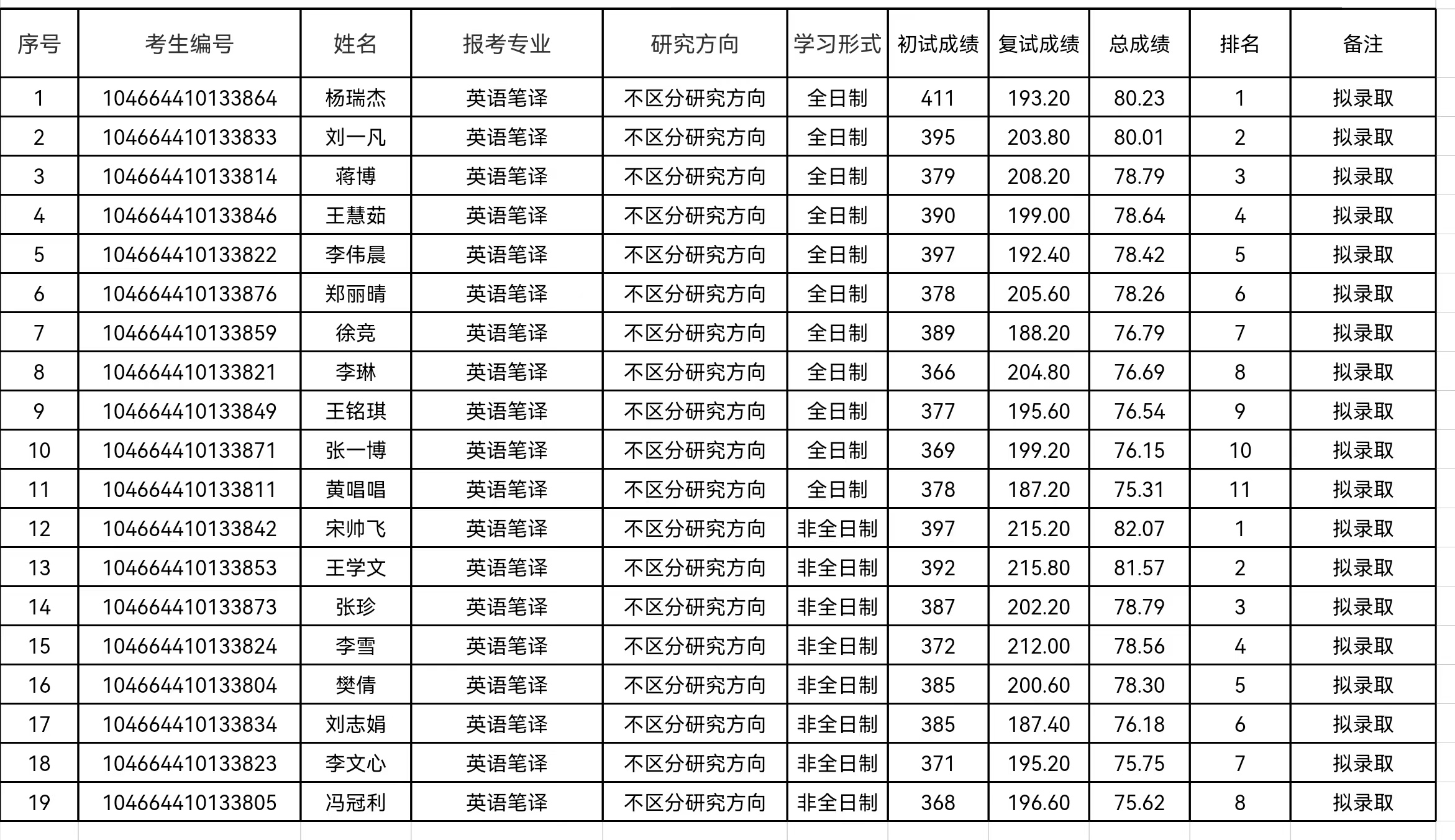 Bet365网址 英语笔译专业2024年硕士研究生复试名单