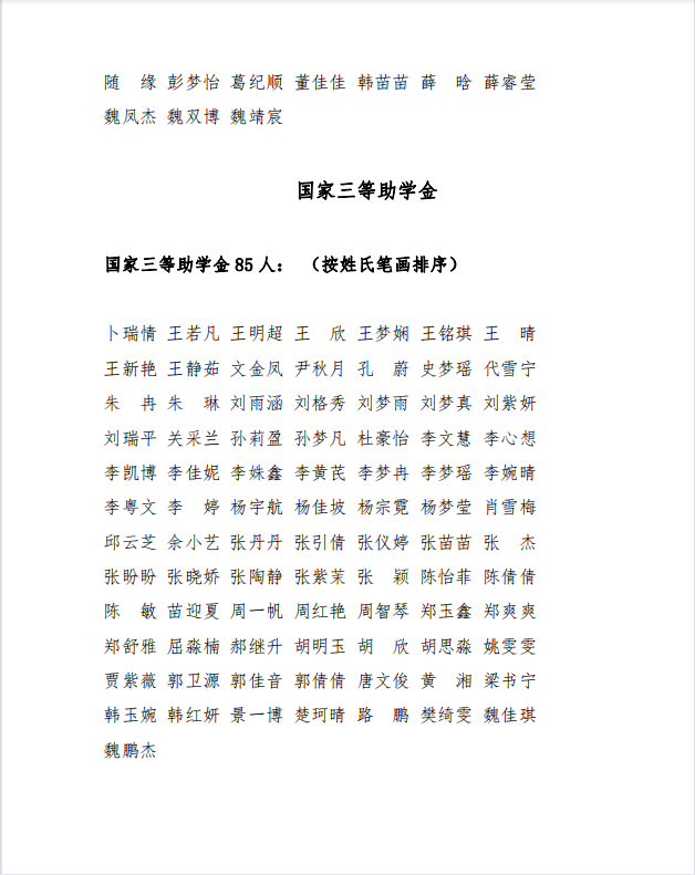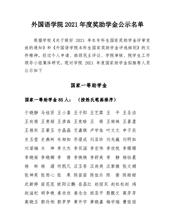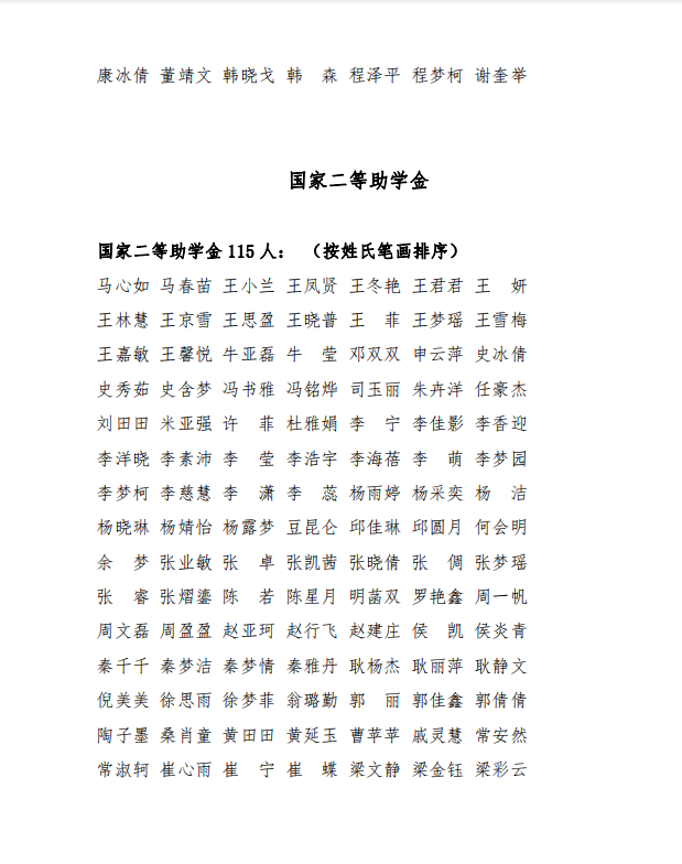 Bet365网址 2020-2021学年国家励志奖学金公示