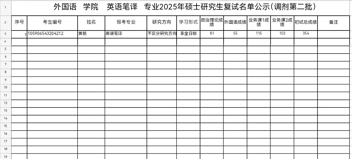 Bet365网址 英语笔译专业2025年硕士研究生复试名单公示(调剂第二批)