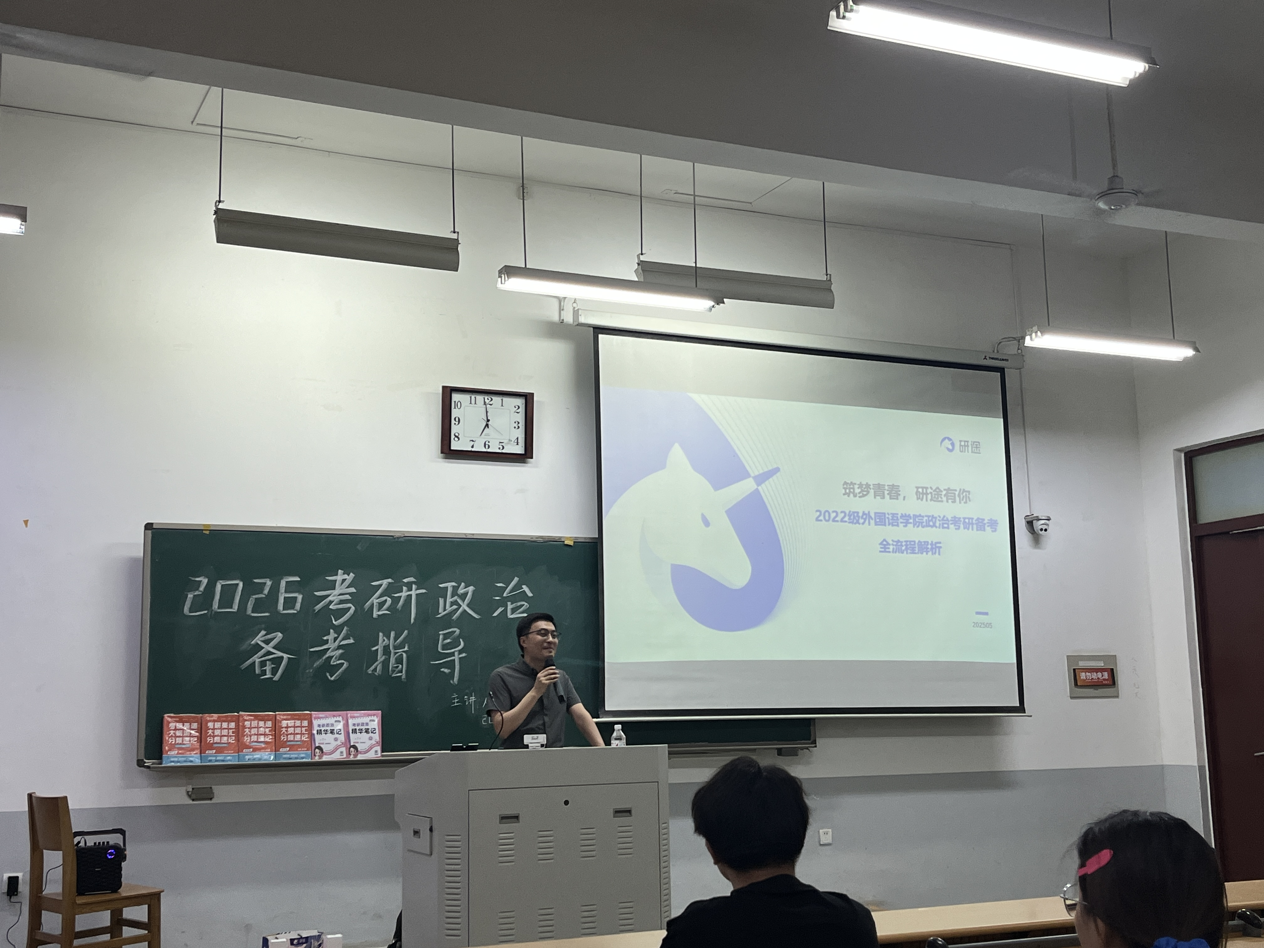 讲座伊始,范老师以问题形式与现场同学进行互动,分析了考研最新形势,并对学科复习进行了详细的指导和分享,围绕考研趋势、备考常识、怎样选择合适的备考书籍等内容展开详细分析,使在场同学们对考研有了初步接触和认知。他表示,同学们要打破信息差,重视择校择专业。最后耐心解答了现场同学们提出的考研困惑并提出针对性的合理建议,并且希望同学们明确考研目标,为自己未来做出规划。
