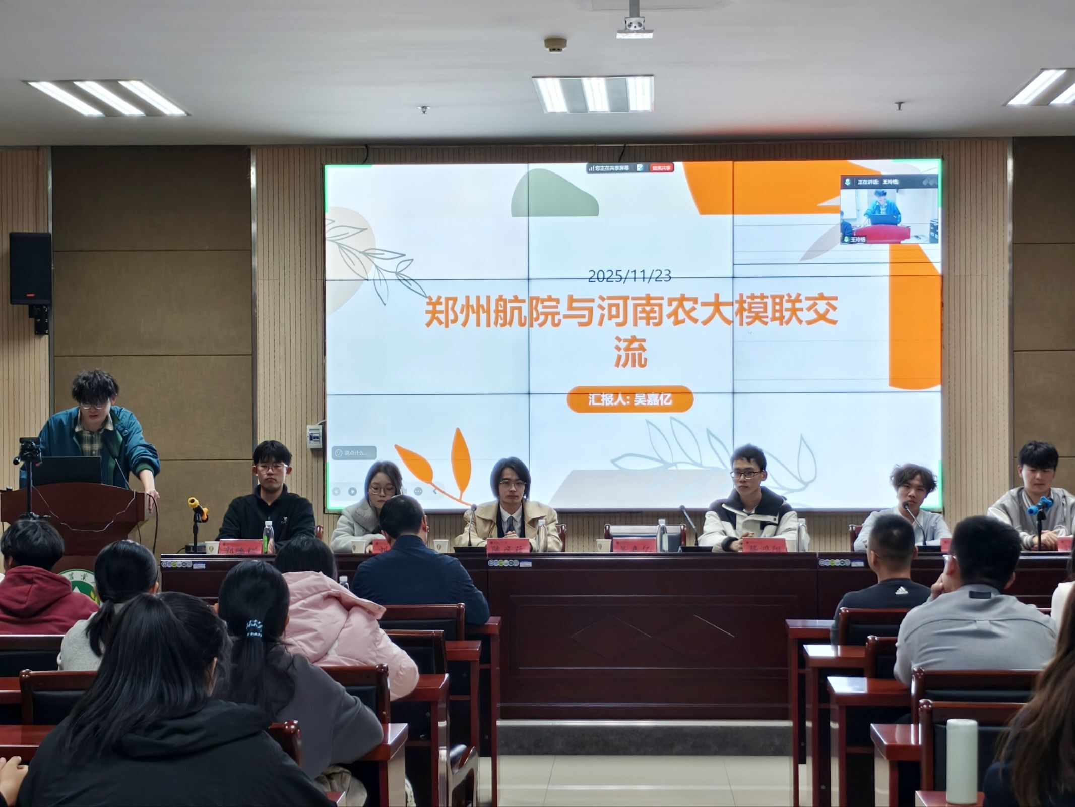 分享会上,兄弟院校代表详细介绍了模联社团架构和学术部、外联部、新媒体运营部、会务部等核心部门职责,讲解了模联活动物料筹备、社团招新、学术培训、校外交流及校内会议举办流程等内容,还分享了各类模联会议类型特点与办会经验。在互动环节,现场师生围绕模联相关问题展探讨,多位有参会经验的同学分享了参加模联活动在提升公众演讲、英语实践、资料检索及深化国际问题认知等方面带来的显著收获,现场气氛热烈,交流充分。