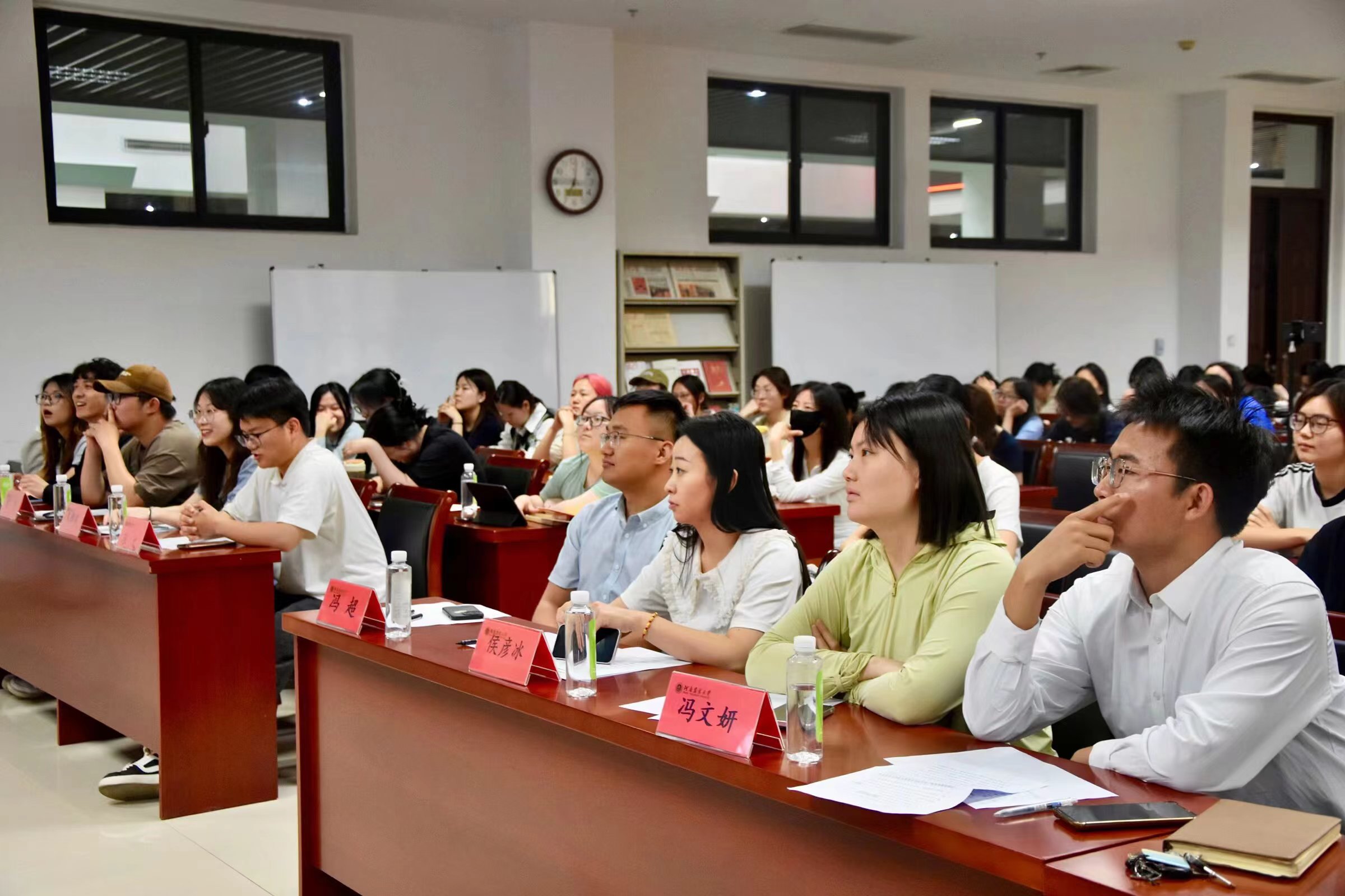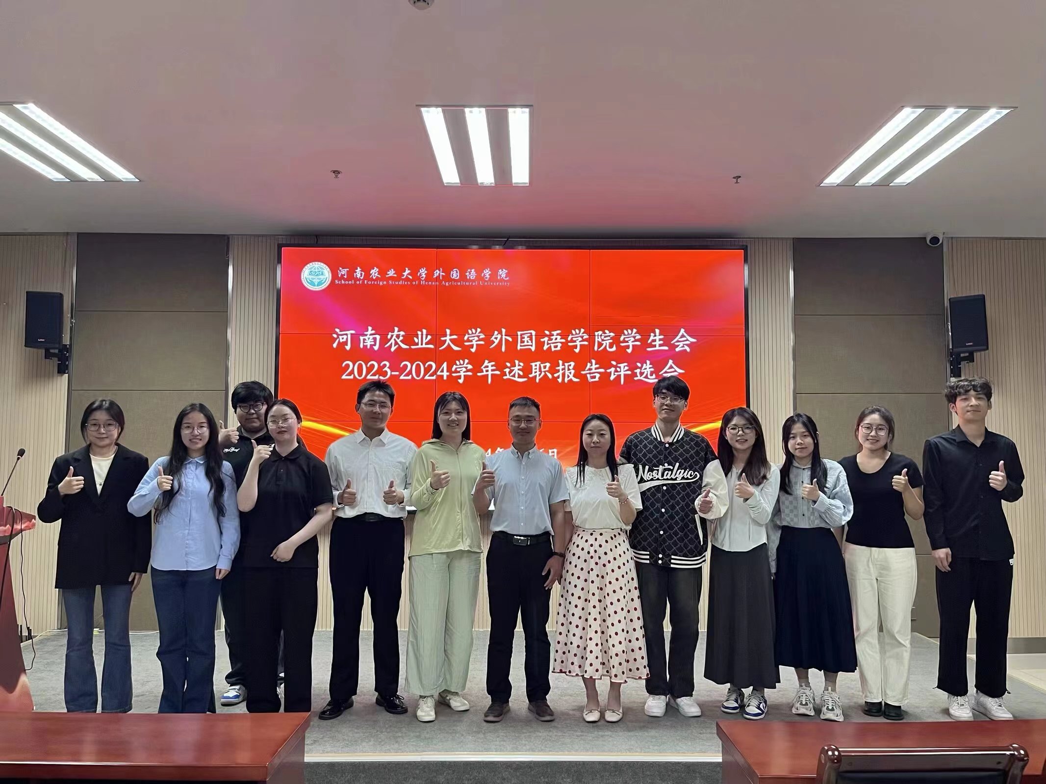 学生会2023-2024学年述职报告评选会。院团委书记冯超,院辅导员侯彦冰、冯文妍出席会议,学生会成员,团委办公室、党建办公室、新媒体中心主要学生干部参与会议。
