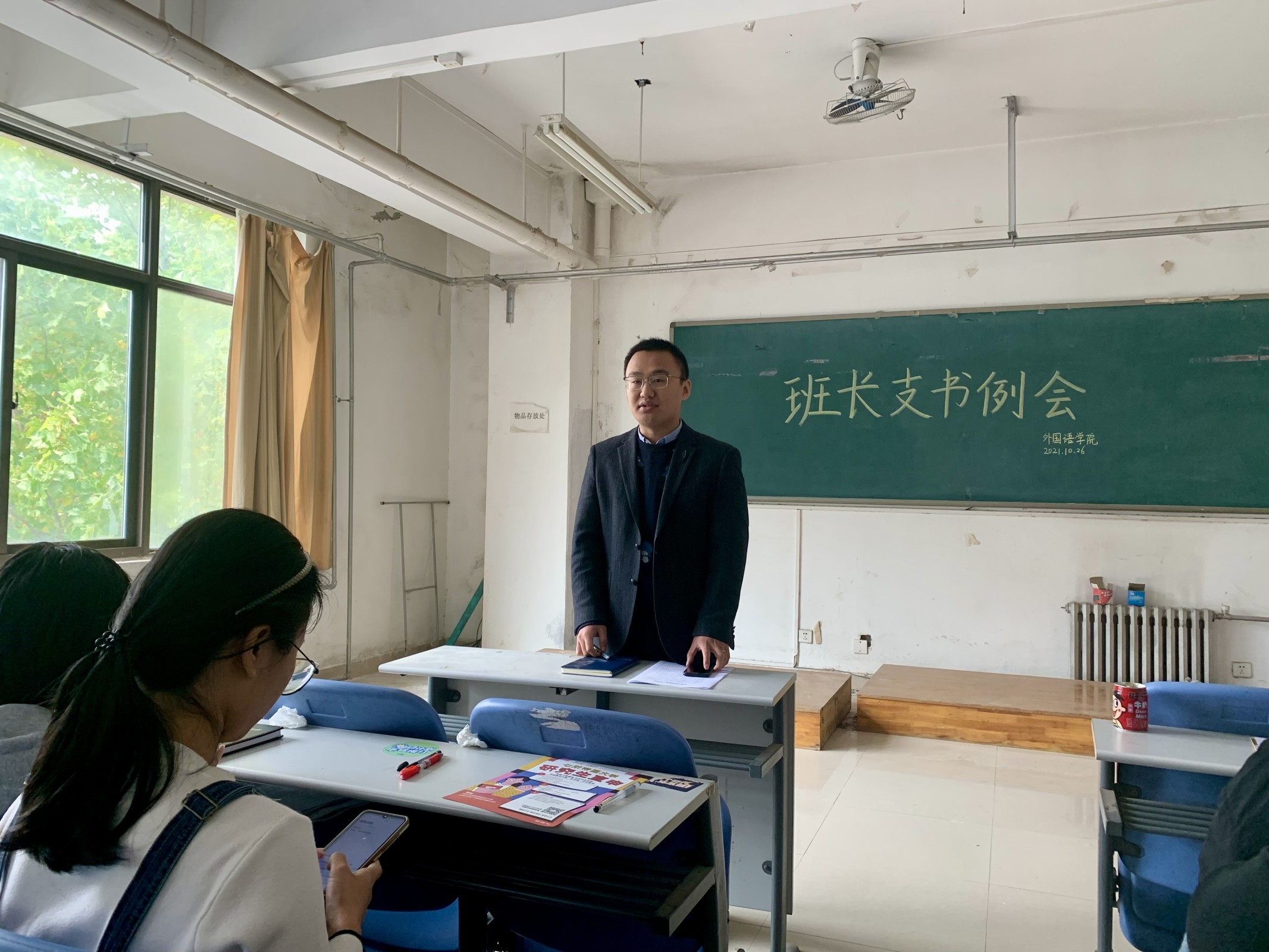 于龙子湖校区海棠园202自习室召开本学期第二次班长支书例会。团委副书记冯超携主要学生干部和各班班长支书参加此次例会。
