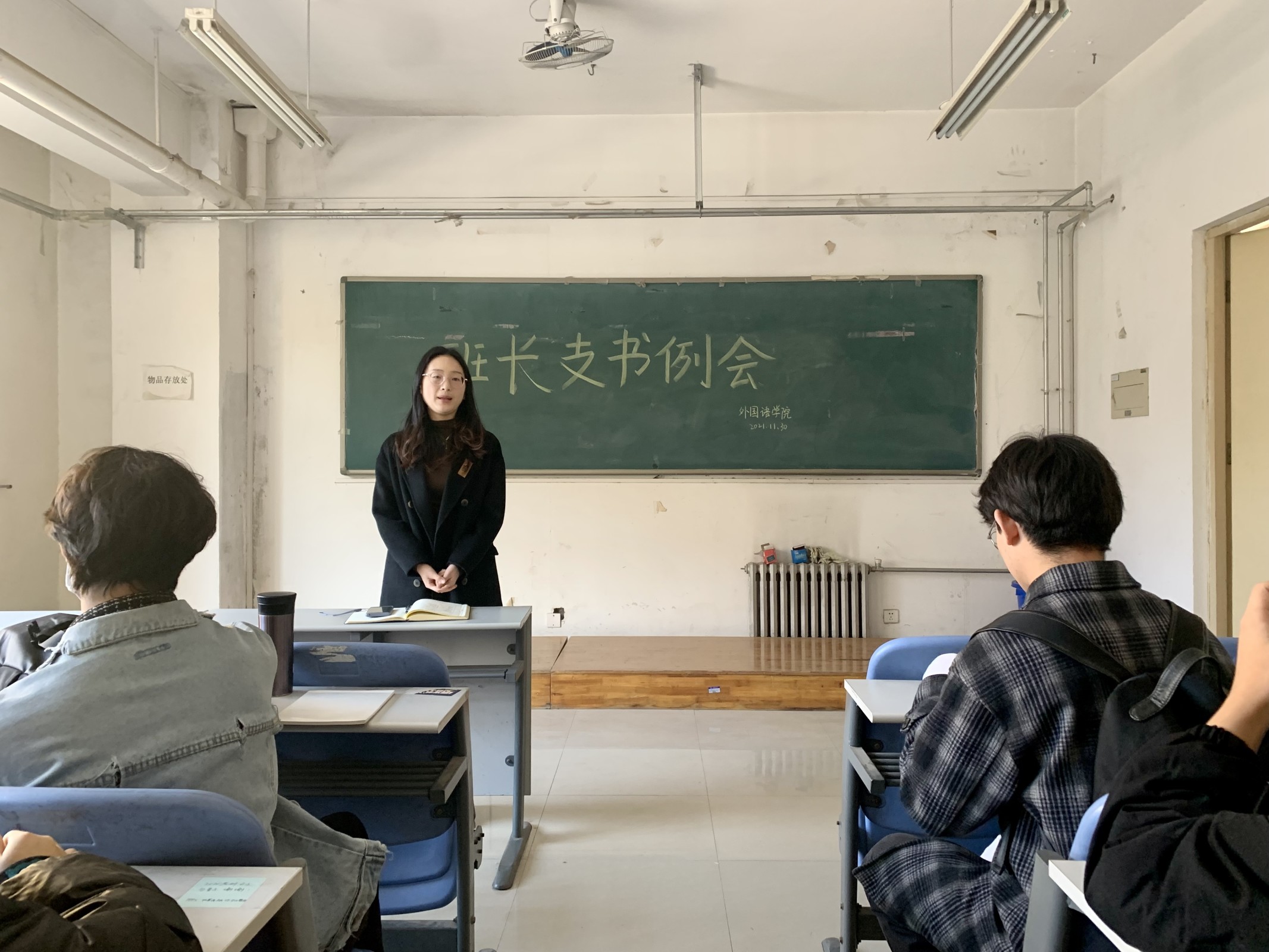 于龙子湖校区海棠园202自习室召开本学期第五次班长支书例会。团委副书记陈桃携主要学生干部和各班班长支书参加此次例会。