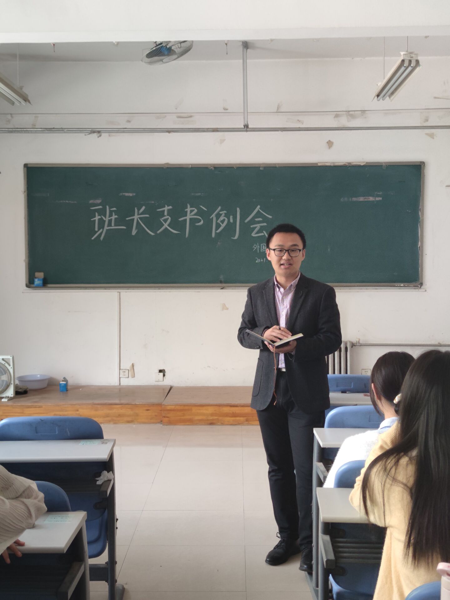 于龙子湖校区海棠园202自习室召开了本学期第九次班长支书例会。院团委副书记冯超携主要学生干部和各班班长支书参加此次例会。