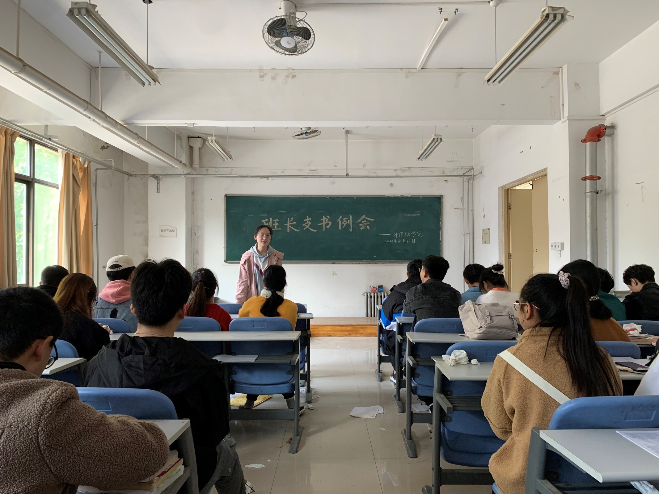 于龙子湖校区海棠园202自习室召开了本学期第一次班长支书例会。团委副书记陈桃、冯超、辅导员穆君怡携主要学生干部和各班班长支书参加此次例会。