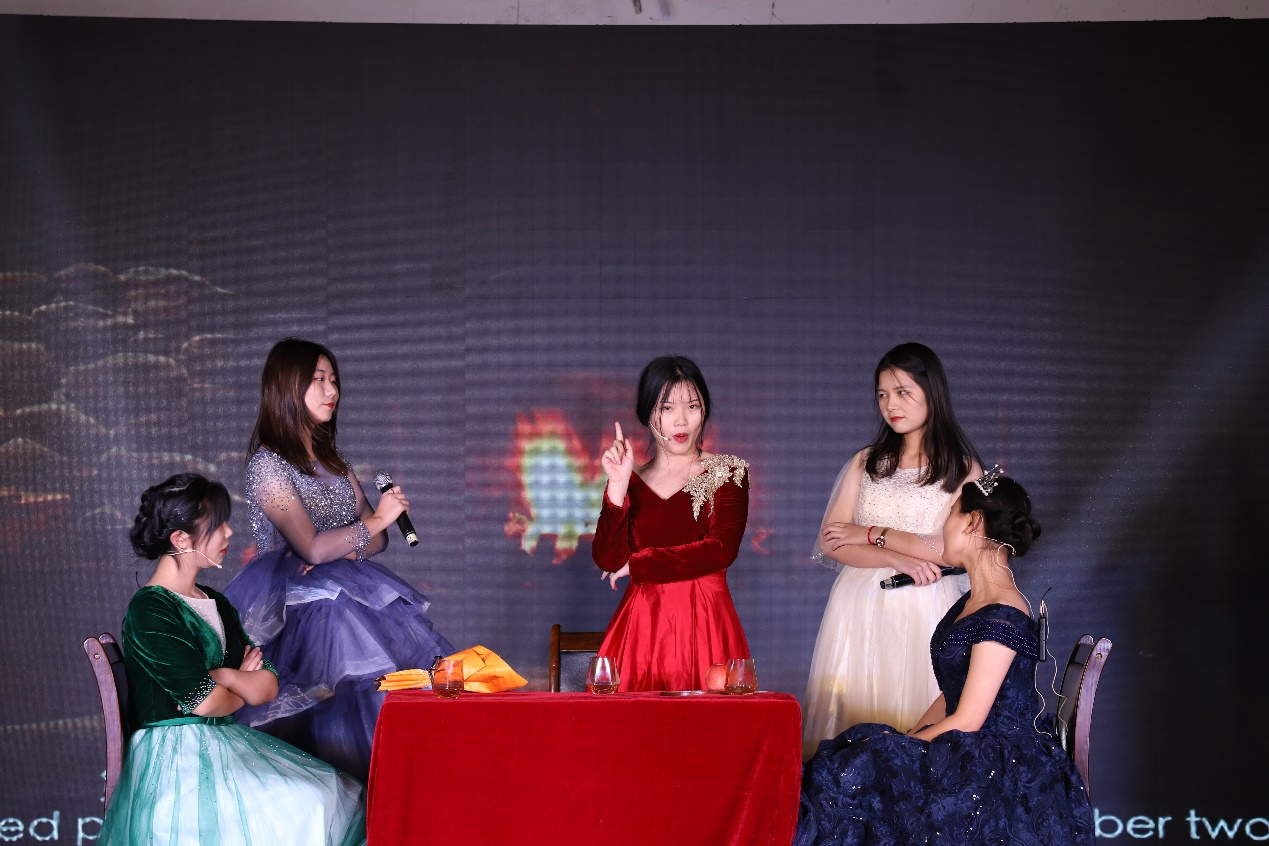 为此次晚会致辞。随后校电乐团表演的《猛犸》正式拉开晚会的帷幕,热情奔放的音乐节奏与绚丽斑斓的灯光相得益彰,瞬间点燃了晚会的气氛;张辰龙、张孝延用日语重新演绎下经典歌曲《四面楚歌》,赋予经典旋律以新的活力和生命,别有一番风味;情景剧《笑看风云》用幽默风趣的演绎手法,让同学们会心一笑的同时,亦让其感受到奋斗精神的内涵与珍贵。院中国舞队带来的舞蹈《清平乐》,队员们细碎的舞步,轻云般的慢移,旋风般的疾转,舞出了旋律里的离合悲欢,也引领着在场观众梦回长安,重返盛唐;英文音乐剧《后妈茶话会》在紧张的节奏中拉开帷幕,表演者们凭借流利的口语、生动夸张的动作将角色的性格特点展现的淋漓尽致。作为压轴节目的T台秀,动感随音乐而现,活力随脚步而出。优雅的台步,各具特色的定点动作,使在场观众的欢呼声一浪高过一浪,更将晚会的气氛再次推向高潮。最后,晚会在英译协会婉转悠扬的合唱《My Love》中圆满落幕 。