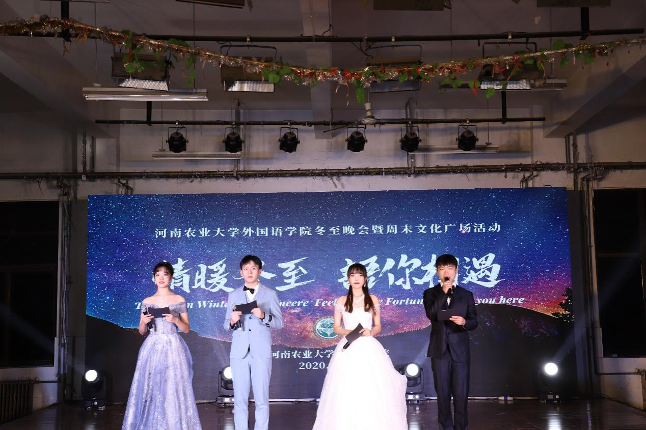 于龙子湖校区一餐厅三楼举办了冬至联欢晚会暨周末文化广场活动。院长张俊杰,党委副书记王启佩,副院长张卫东,团委副书记陈桃、冯超,辅导员牛烁,以及全体20级新生共同欣赏了这场精彩绝伦的视听盛宴。