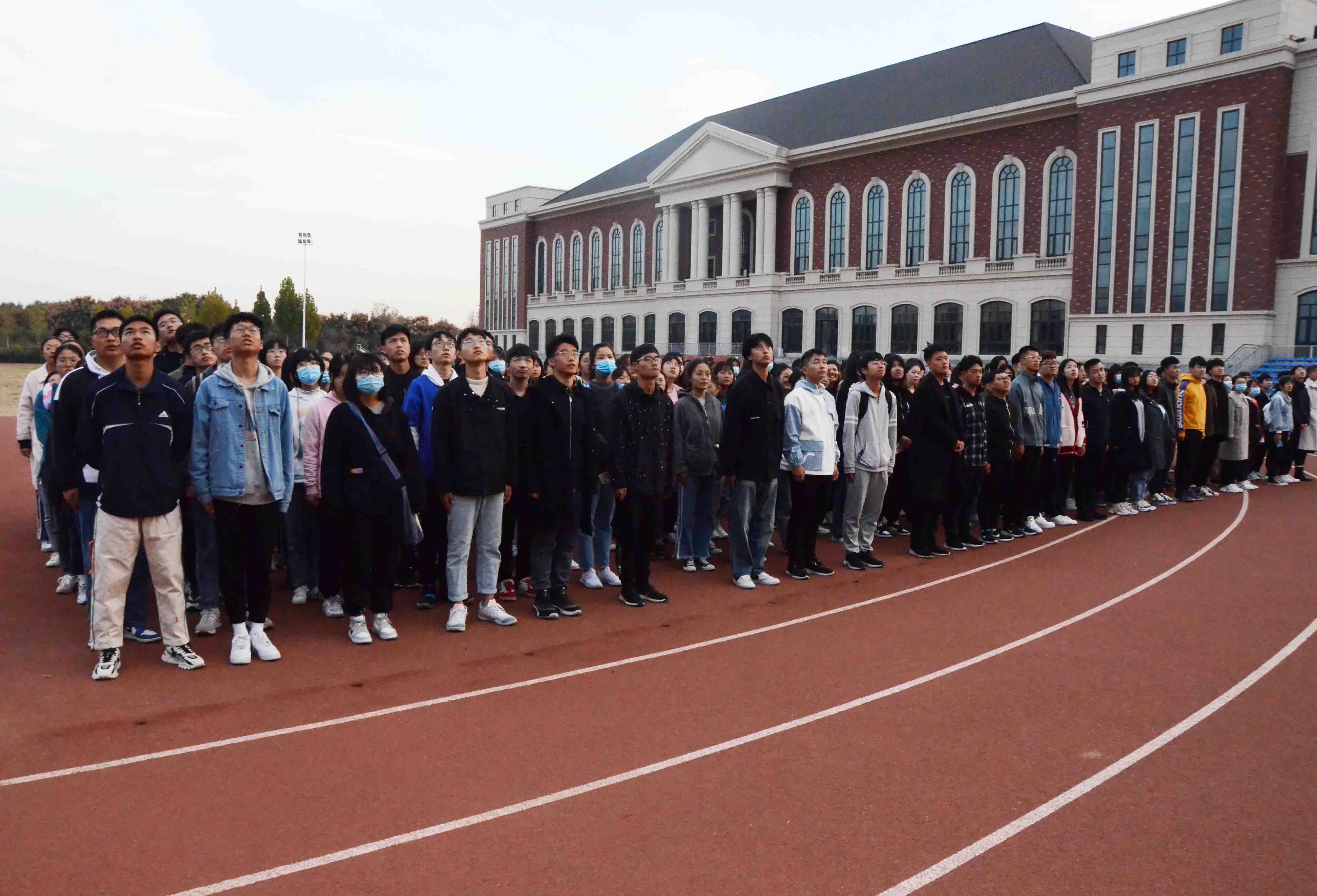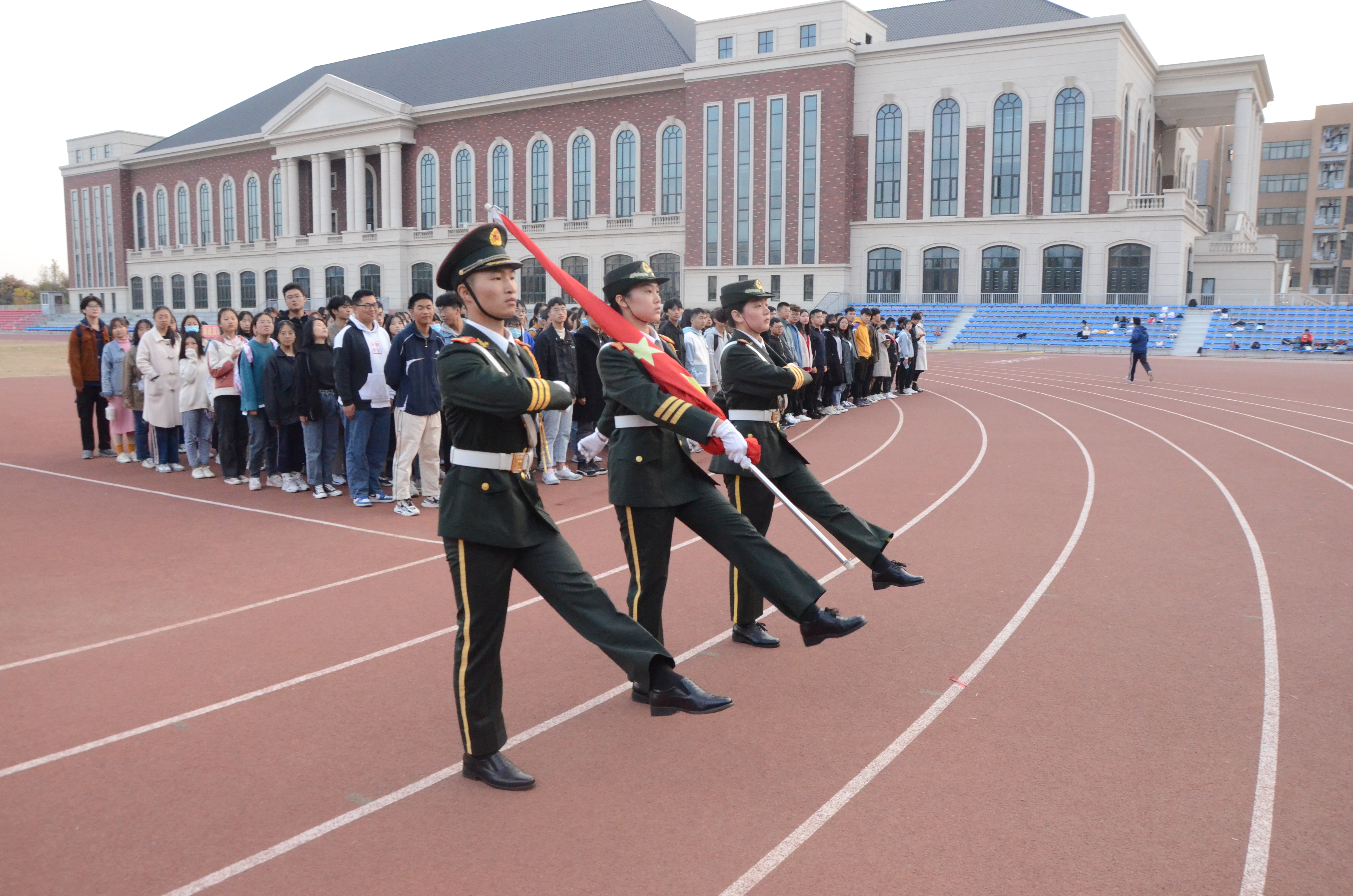 于11月2日早晨6点50于田径场举办升国旗仪式,20级全体新生参与此次升旗仪式。