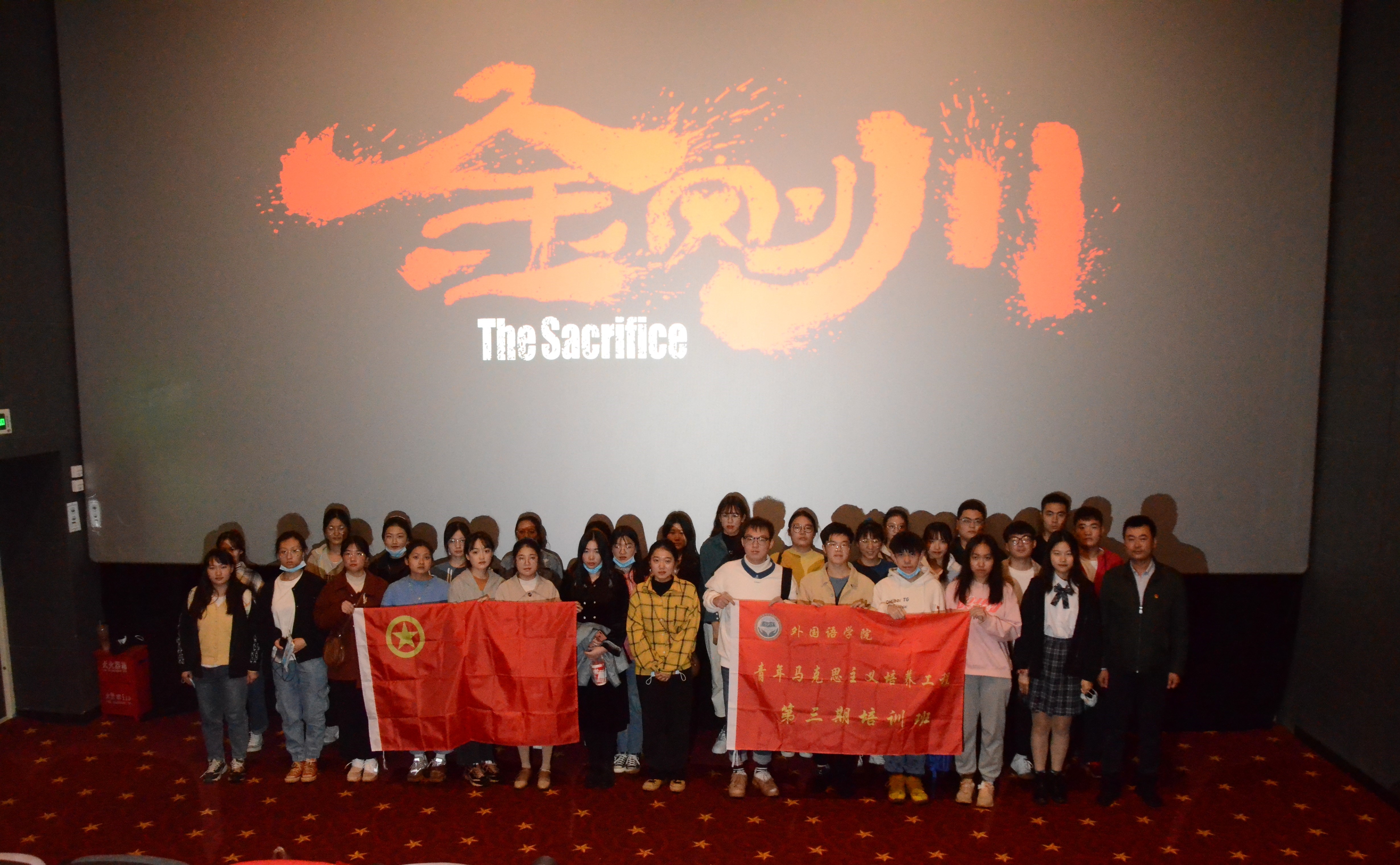 组织全体师生党员、第三期青马学员和主要学生干部一起观看抗美援朝红色教育片《金刚川》。
