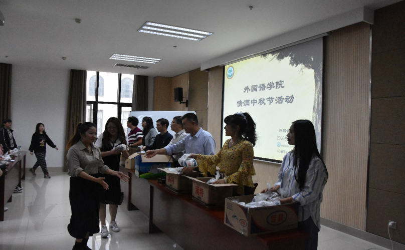 领导班子成员、教师代表、辅导员一起为在校学生送上了月饼和酸奶。