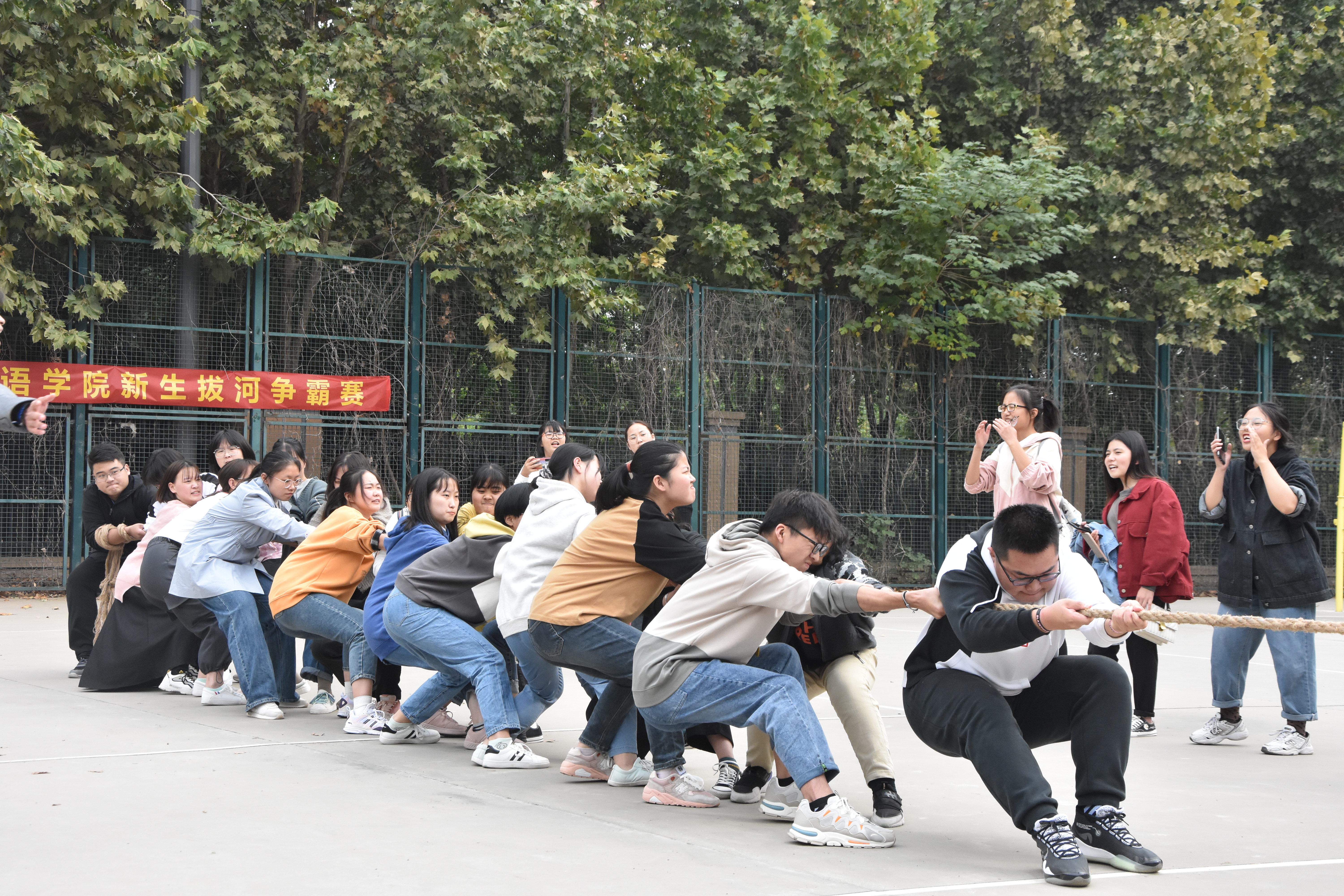 在龙子湖校区篮球场、排球场举办了新生拔河友谊赛。