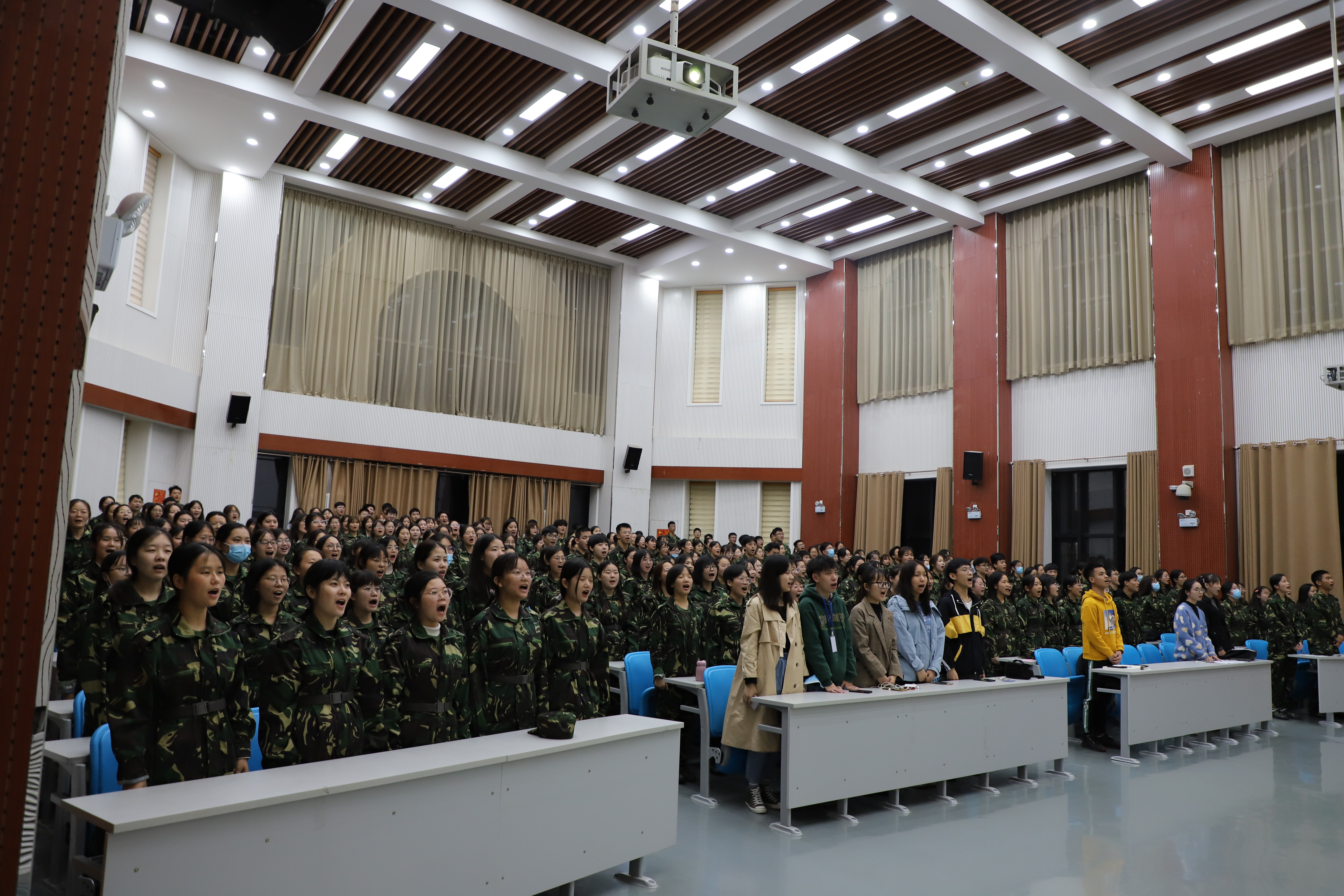 大会在庄严洪亮的国歌声中拉开序幕。辅导员闫雪茹首先进行军训动员讲话。她表示,军训是大学生在校期间履行兵役义务的基本形式,更是我国国防建设的需要。“民无兵不安,国无防不立。”她希望通过军训能激发新生的爱国热情,增强新生的国防意识,塑造吃苦耐劳品质;此外,她和新生一起约定遵守“三齐”、“五要”、“七不”等守则,为大学期间的军训生活画上圆满句号。