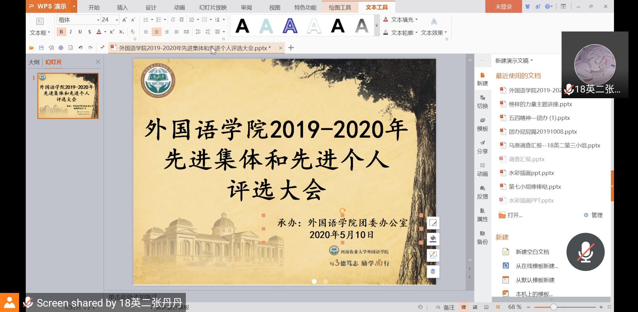 通过腾讯会议以线上形式举办2019-2020年度校级先进集体和先进个人评选大会,共有41名同学及6个班集体参与评选。Bet365中文网址