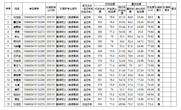 河南农业大学2020年硕士研究生复试情况汇总表(第一志愿)