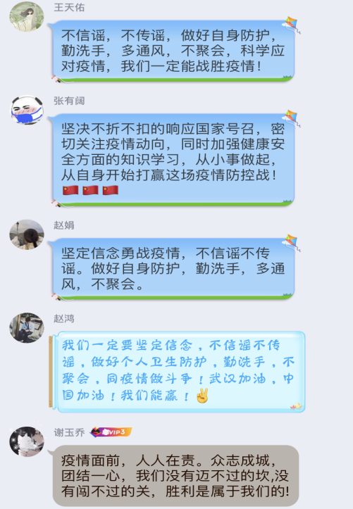 于2月17日至2月21日期间,组织全院本科生开展“同心战“疫”,共克时艰”——疫情防控网络主题班会。
