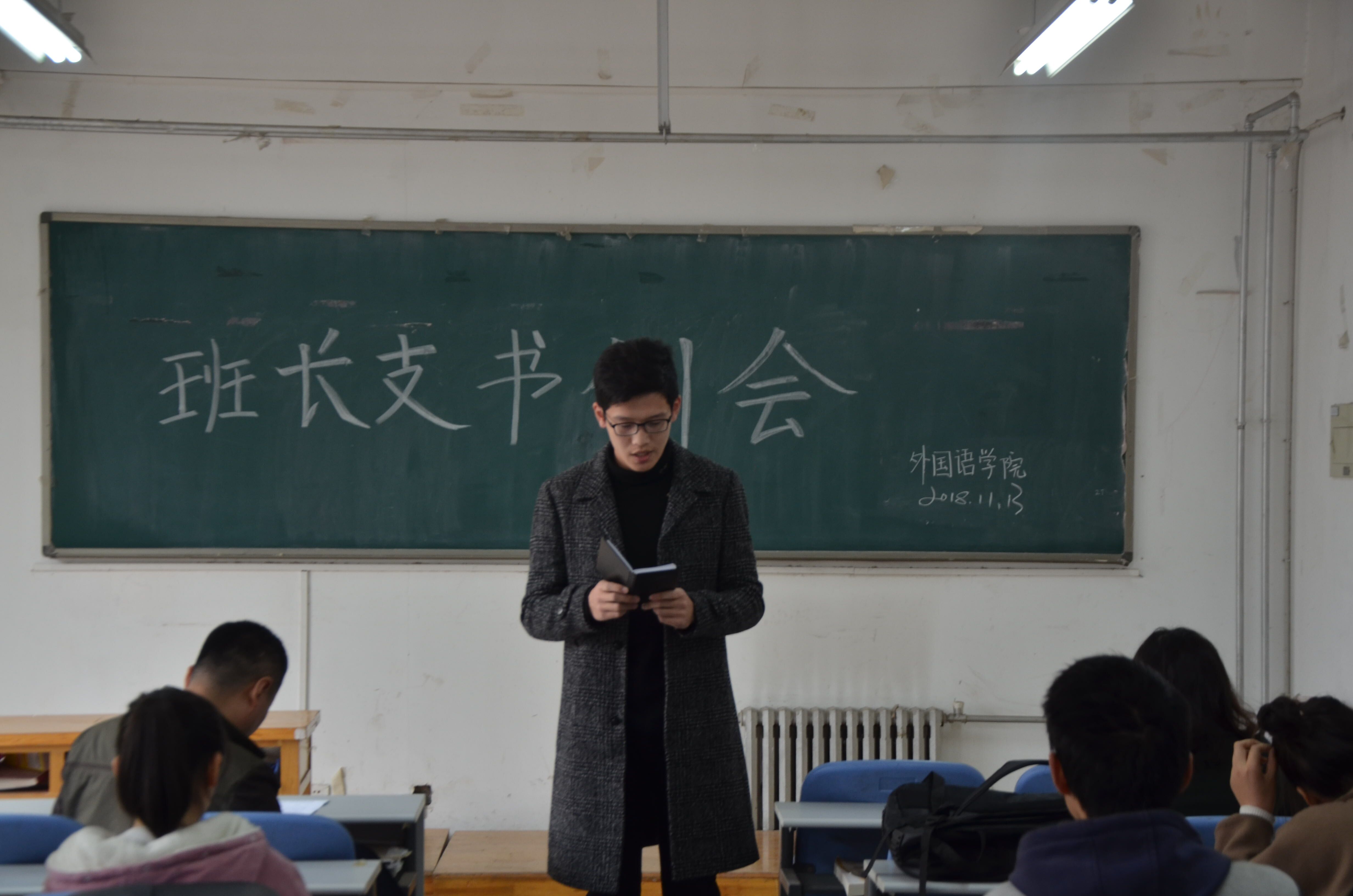 在龙子湖校区海棠楼202教室召开本学期第六次班长支书例会。团委书记李沛携主要学生干部及各班班长支书出席本次会议。