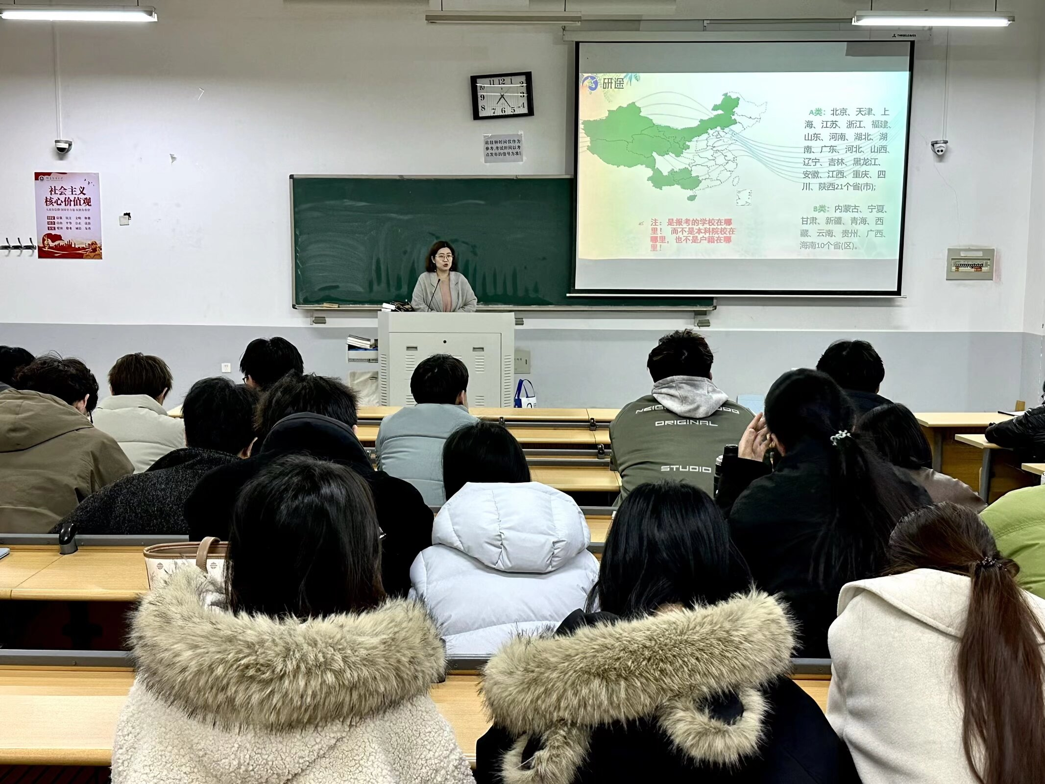 本次大讲堂围绕考研政治备考与院校选择两大核心内容展开,兼具实用性与指导性。宣讲环节中,讲师首先针对考研政治学科的复习脉络、学习重点及备考周期规划进行细致讲解,为同学们梳理清晰的政治复习思路,破除了学生对于政治备考的常见误区;在择校规划环节,讲师立足Bet365网址 专业特色,结合历年考研报录数据、各院校招录要求及就业发展前景,为学生分析不同层次院校的报考优势与适配性,帮助在场同学建立科学的择校认知,为后续考研备考规划筑牢基础。