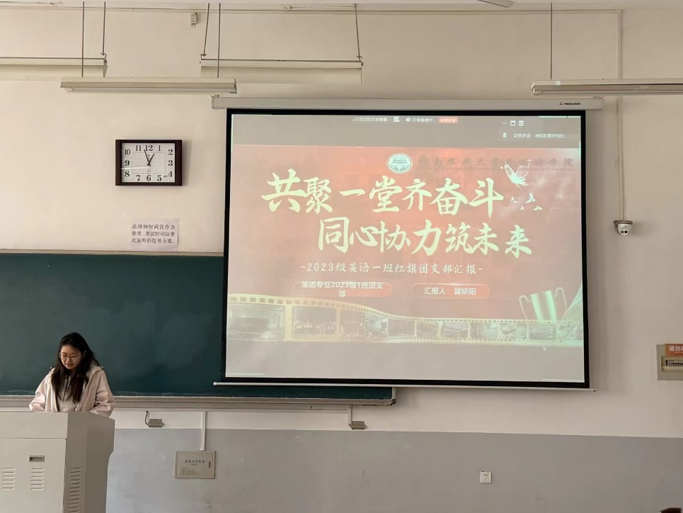 会上,来自各班级的班长与团支书依次上台,围绕班级建设、学风营造、团支部活动、志愿服务、荣誉成果等方面进行全面陈述。他们通过详实的数据、生动的案例与丰富的照片,展示了各自班级与团支部在思想引领、学业互助、文体实践等方面的突出成绩,充分展现了外语学子团结奋进、锐意进取的精神风貌。