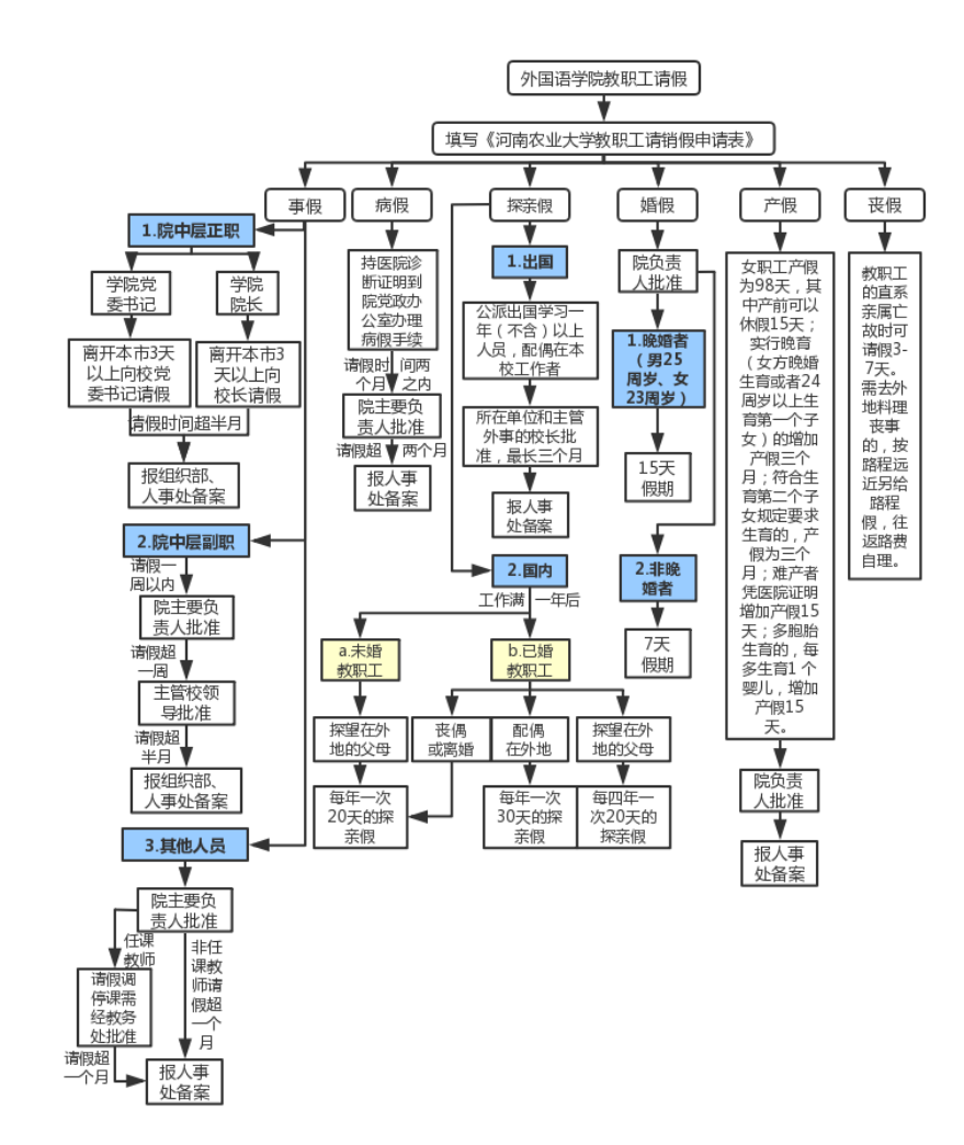 注:1.所有教职工请假,严格按照《河南农业大学教职工考勤和请假暂行规定(校政人[2015]31号)》。